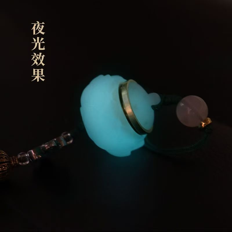 夜光石发光原理,先吸光后发光,光照越久,发光越亮,可以重复吸光发光,循环使用。赠送艾草味或桂花味香丸,中国结流苏,莲花造型,具有细节之美。