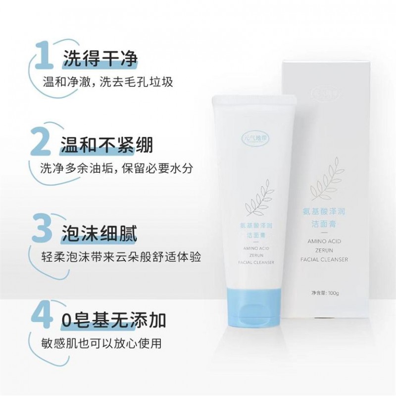 肌肤干燥紧绷、泛红、水油不平衡、刺痛干痒、毛孔堵塞,都是因为清洁不当。氨基酸泽润洁面膏,温和配方,水润护肤,氨基酸净颜配方,深层净肤更持久。
