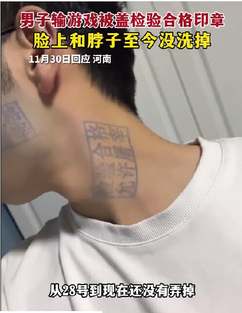 【男子玩游戏被盖猪肉印章去除不了】快科技11月30日消息,据国内媒体报道称,近日一男子跟朋友玩游戏,结果输了被盖章了。