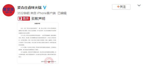 近日,有关“贤合庄吃辣火锅受伤”一事,我方已在第一时间与受伤顾客协调解决并进行赔偿,现双方达成和解。对于此次事件,我方深表歉意并在此将事态进展向社会公众反馈: