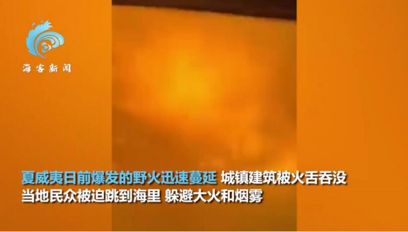 【夏威夷多地野火蔓延 民众跳海避难】据美国哥伦比亚广播公司(CBS)9日报道,受飓风“多拉”带来的强风影响,夏威夷日前爆发的野火迅速蔓延,城镇建筑被火舌吞没,当地民众被迫跳到海里,躲避大火和烟雾。