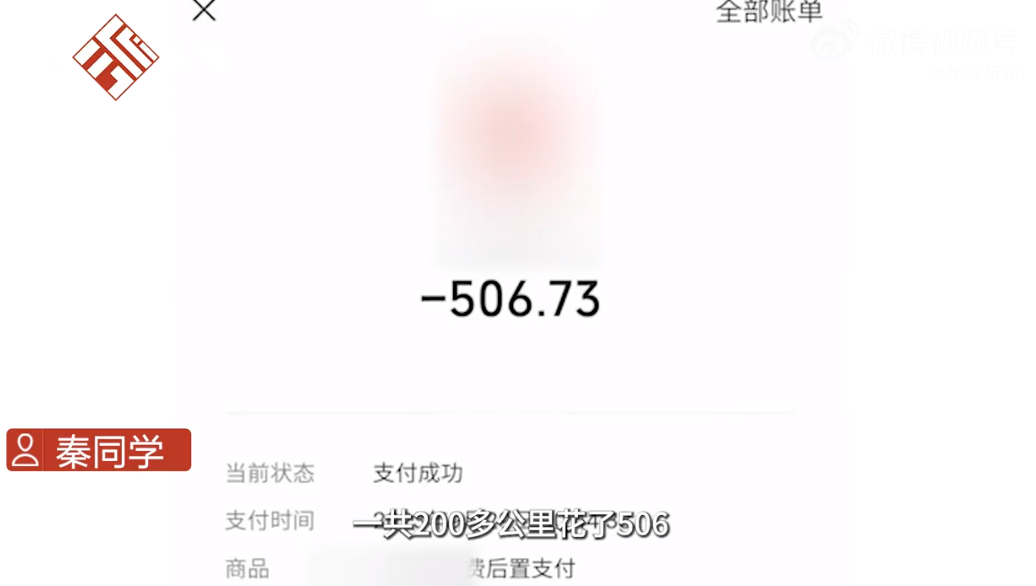 秦同学告诉记者,一个行李,两个人,全程249公里,总共收费506元,里面还包含他给司机的小费;虽然价格比高铁票价略高,但分摊下来还可以。